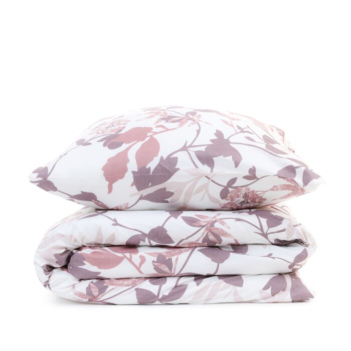 Das Bettwäsche-Set ROSA besteht aus einem Leinenbezug in den Maßen 160 x 200 cm und einem Kissenbezug in den Maßen 70 x 80 cm. Es gibt mehrere Blätter auf weißem Hintergrund. Das florale Motiv ist in gedeckten Rosatönen gehalten. Die Bettwäsche wird mit einem Reißverschluss befestigt.