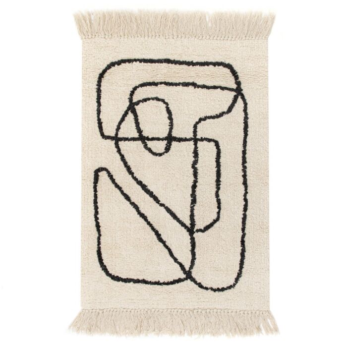 Der Belur Teppich zeichnet sich durch ein lineares Muster in Schwarz aus und ist in beigen Farbtönen gehalten. Er ist mit zwei gegenüberliegenden Quasten verziert und hat eine rechteckige Form mit den Maßen 140 x 200 Zentimeter. Hergestellt aus hochwertiger Baumwolle, bietet er Weichheit, angenehmes Tragegefühl, Langlebigkeit und Widerstandsfähigkeit gegen Beschädigungen. Handwäsche des Produkts wird empfohlen.