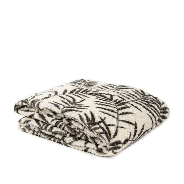 Die warme Decke BLOS ist ein Accessoire, das sich in jedem Zuhause als nützlich erweisen wird. Das flauschige Material wird Sie glücklich machen, danach zu greifen, während Sie ein Buch lesen oder einen Heimfilm ansehen. Auf der weißen Oberfläche der Decke befindet sich ein Muster aus grünen Palmblättern, und die Struktur ähnelt einem geflochtenen Gewebe. All dies lässt die Decke großartig aussehen und passt leicht in das Interieur, das im modernen und Boho-Stil eingerichtet ist. Die BLOS-Decke eignet sich sowohl für Wintertage als auch für kalte Sommerabende, die wir auf der Terrasse verbringen, und wird sich daher auf dem Sofa und auf der Gartenschaukel als nützlich erweisen. Dank des schönen Designs und der ästhetischen Verarbeitung können Sie es auch als Tagesdecke im Schlafzimmer oder als Sofa im Wohnzimmer verwenden. Maße und Material Die BLOS-Decke besteht aus Polyestergewebe, das weich und warm ist. Dieses Material ist langlebig und beständig gegen Pilling und Verfärbungen beim Waschen, sodass die Decke Ihnen lange Zeit in makelloser Form dienen kann. Funktionalität und Design - Flauschiger, warmer Stoff - Modisches Blumenmuster - Muster: Weiße Decke mit grünen Blättern Verwendung und Anwendung - Geeignet für Wintertage und kalte Sommerabende - Vielseitig einsetzbar auf Sofa, Gartenschaukel, im Schlafzimmer oder Wohnzimmer Merkmale - Flauschiges und warmes Polyestergewebe - Modisches Blumenmuster - Größe: 150 x 200 cm