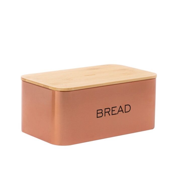 - Kenmerken: De glanzende koperkleur maakt van de bak een opvallend en in het oog springend designelement in de keuken. De broodtrommel heeft het voordeel van afmetingen van 33 x 18 x 12 cm voor een grote capaciteit.