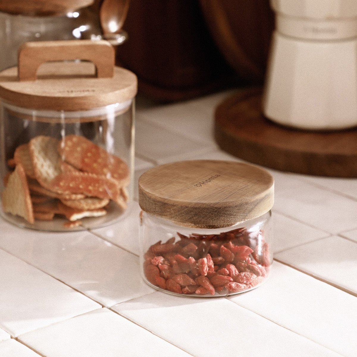 HOMLA | Glasbehälter mit Akaziendeckel | 0,25 l