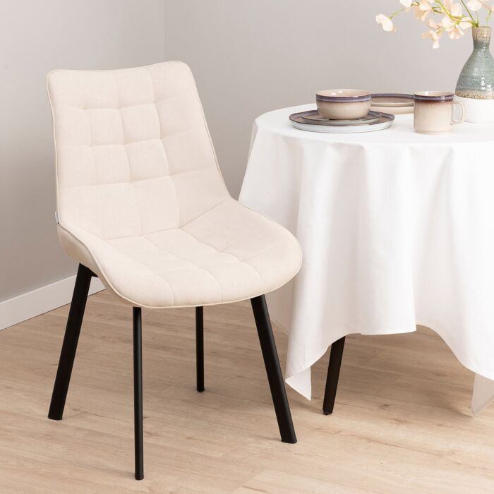 Der HOMLA Colin Stuhl besticht durch sein attraktives Design und den komfortablen Stoffbezug, der sowohl stilvoll als auch funktional ist. Mit seiner eleganten Ausstrahlung fügt sich der Stuhl perfekt in jedes Zuhause ein und eignet sich ideal für Esszimmer, Küchen und Wohnzimmer. Die schwarzen Beine bieten nicht nur Stabilität, sondern verleihen dem Stuhl auch eine moderne Note.