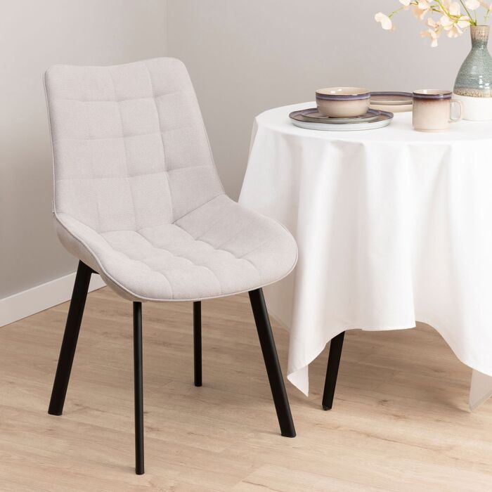Der HOMLA Colin Stuhl überzeugt durch sein ansprechendes Design und seine Funktionalität. Mit seinem attraktiven Stoffbezug in hellgrau und den schicken schwarzen Beinen ist der Stuhl nicht nur ein praktisches Möbelstück, sondern auch ein stilvolles Designelement für Ihr Zuhause.