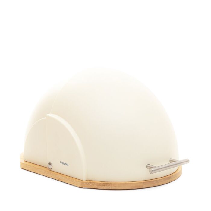 HOMLA | Brotkasten | Runder Scharnier aus Bambus und Kunststoff 37 x 26 x 22 cm