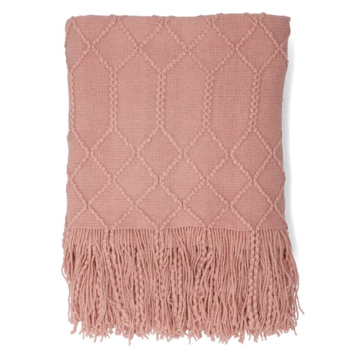 - Die rosa LOOP-Webdecke ist ein Produkt mit einer leichten und lässigen Boho-Ästhetik.