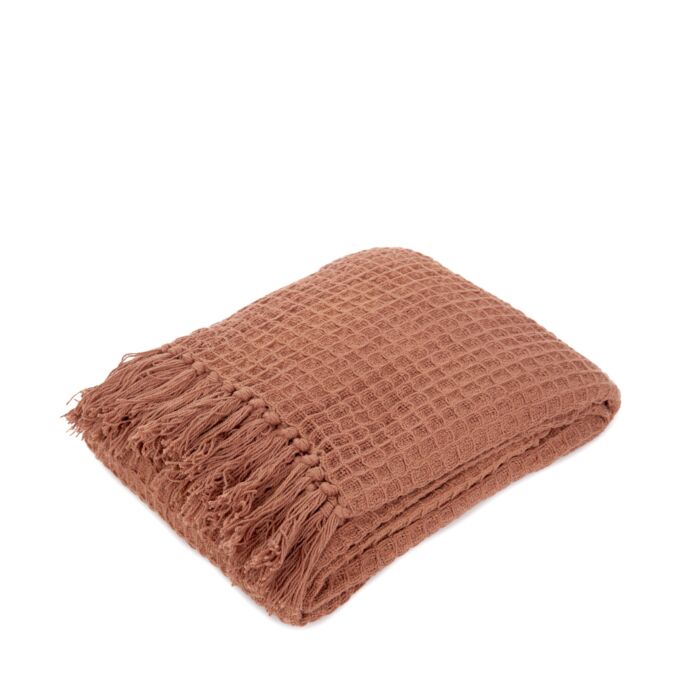 Homla Deken | VAFFEL | met franje baksteenrood | 130x170 cm | 856865
