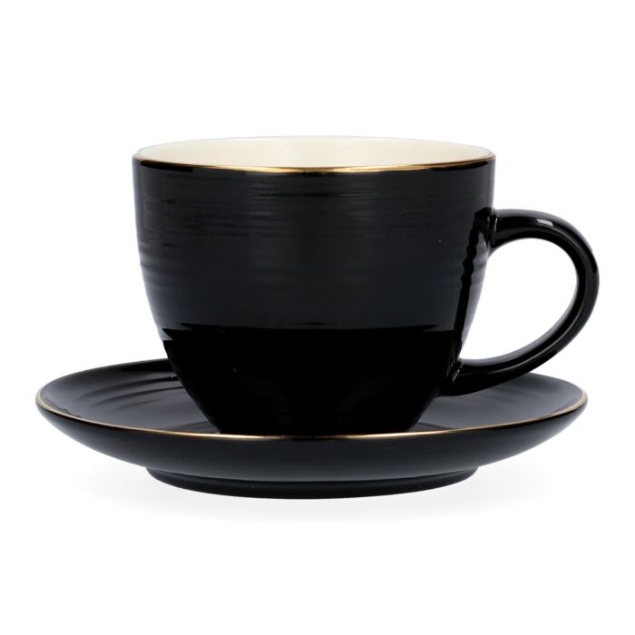 HOMLA | Tasse und Untertasse | Minimalistisches Design | Schwarz mit goldenen Details