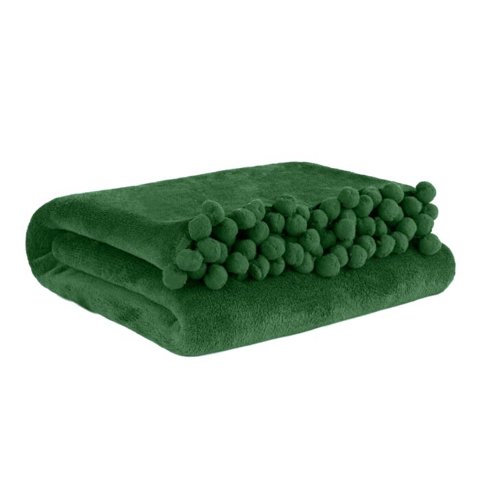 HOMLA HJO Kuscheldecke mit Pom Poms flauschig & weich – Decke Tagesdecke kariert Bettdecke – für Couch Schlafsofa Polyester 150 x 200 cm grüne Farbe