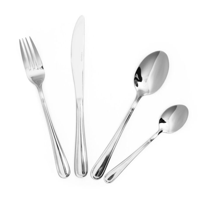 - Die klassische Silberfarbe ist ein universelles und zeitloses Angebot. Das Set enthält 24 Elemente: 6 Löffel, 6 Teelöffel, 6 Fabeln und 6 Messer. Schönes Aussehen, sowie einfache Handhabung fügen profilierte Besteckgriffe hinzu.