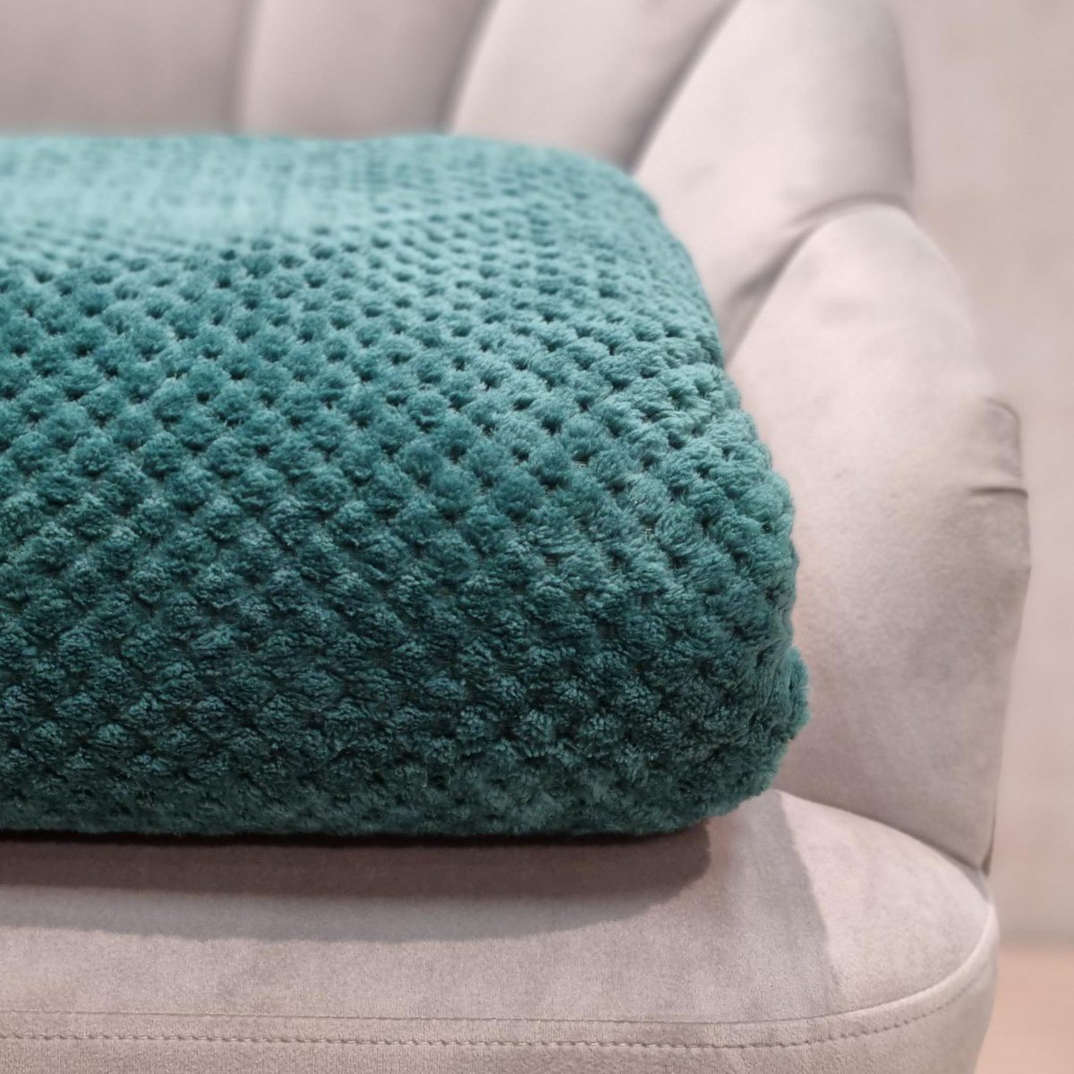 Die grüne NOAH-Decke hat die Maße 150x200 cm und eignet sich daher auch als dekorative Tagesdecke. Sie besticht nicht nur durch ihre elegante Meeresgrüne Farbe, sondern auch durch eine faszinierende Reiskorn-Textur. Die interessanten Nähte mit geometrischem Charakter passen perfekt in moderne Innenräume.