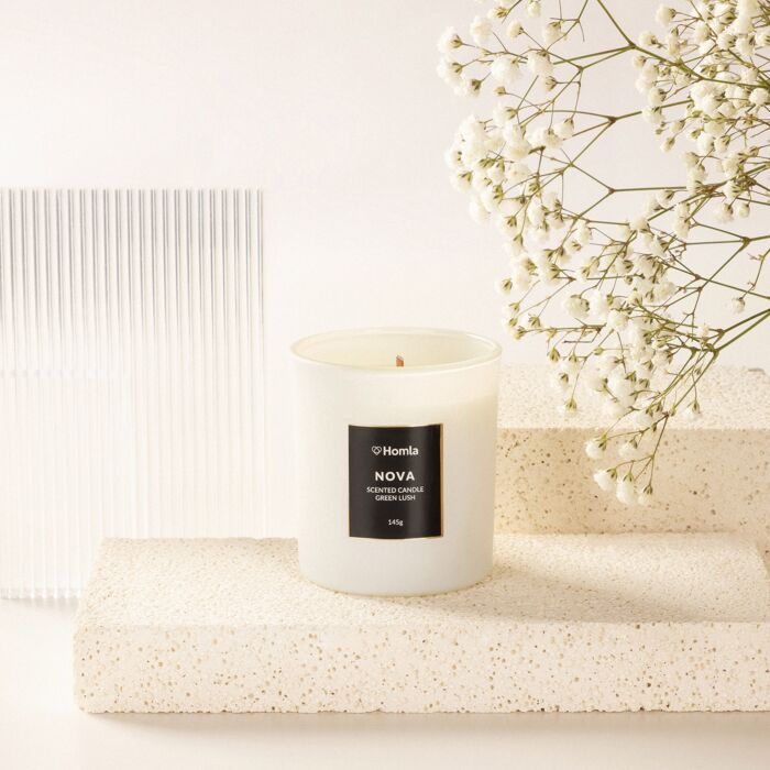 Homla | Duftkerze | Einzigartiger Duft - minimalistische Dekorationskerze - Glasbehälter weiß grün