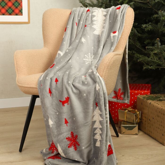HOMLA | Decke | Weihnachtsmotiv - weich -locker gewebt - Polyesterfaser - flauschig - Schlafsofa - kuschelig - 150 x 200 cm