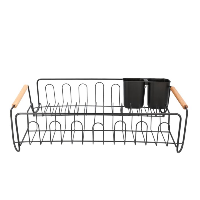 Homla | Geschirrtrockner | 49x33 cm Schwarz aus Edelstahl mit Holzgriffen