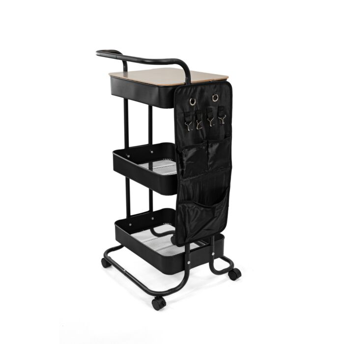 De verrijdbare boekenkast HOMLA HYLLA creëert extra opbergruimte in elke kamer. Dankzij de 4 wieltjes kun je de kast gemakkelijk verplaatsen zonder de planken te moeten legen. Het transport wordt vergemakkelijkt door de handgreep aan de bovenkant, waarmee je de boekenkast gemakkelijk kunt besturen tijdens het transport. De boekenkast bestaat uit 3 planken en wordt geleverd met een organizer die aan speciale haken kan worden opgehangen. Het hele meubel is zwart, wat mooi wordt onderbroken door een naturelkleurige houten plank.