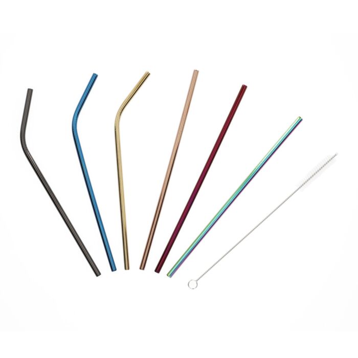 HOMLA RIJO Wiederverwendbare Strohhalme + Bürste – 25 cm Länge Metall Mehrfarbig