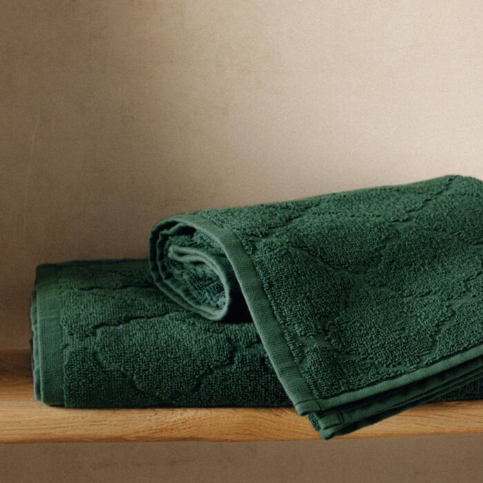 - Grünes Handtuch mit marokkanischem Kleeblattmuster