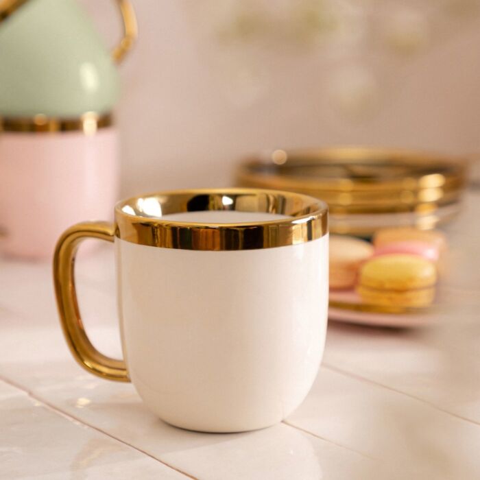 Das minimalistische Design der Sinnestasse ermöglicht eine vielseitige Verwendung in verschiedenen Anlässen, sei es im Alltag oder zu besonderen Anlässen. Die elegante Form und die Kombination von Weiß und Gold machen sie zu einem zeitlosen Stück, das in jedem Geschirrset glänzt.