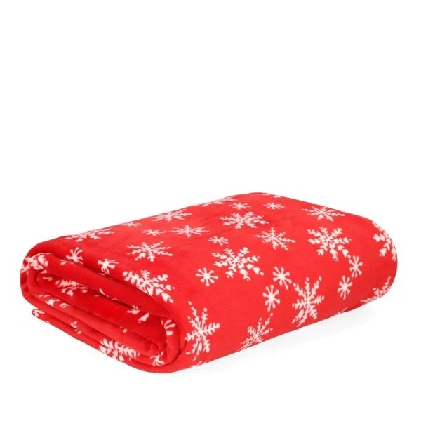 HOMLA | Decke mit Weihnachtsmotiv | Schneeflocken-Aufdruck | Polyester-Kuscheldecke 130 x 170 cm in Rot