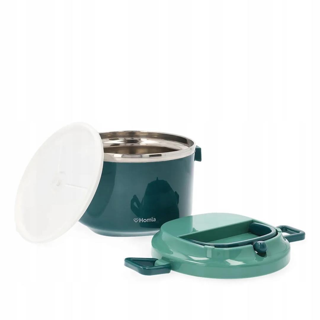 HOMLA | Thermal Lunch Container | Edelstahl 0,9 l Grün mit ausziehbarem Griff