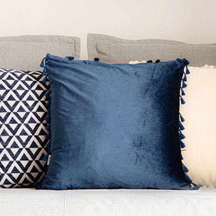 - Dekorativer Kissenbezug mit Fransen in Marineblau