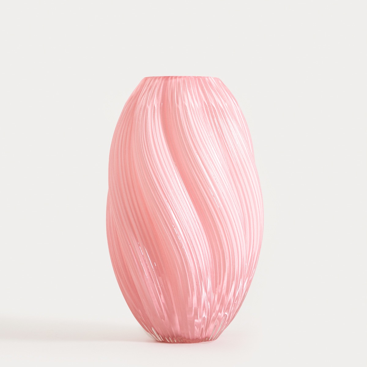 Die SWIRL Vase beeindruckt mit ihrer originellen spiralförmigen Gestaltung. Ihr zartes, pinkfarbenes Glas sorgt für Subtilität, Leichtigkeit und eine romantische Atmosphäre im Interieur. Diese Vase ist nicht nur ein praktisches Dekorationselement, sondern auch ein einzigartiges Highlight, das den Charakter jeder Einrichtung betont.