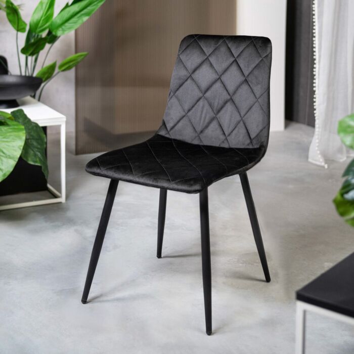 HOMLA Witus Stuhl gepolstert mit schwarzen Beinen – Stuhl für Esszimmer, Küche, Wohnzimmer – bequem und praktisch – strapazierfähiges gepolstertes Material – funktionales Designelement – schwarz 44 x 57 x 88 cm