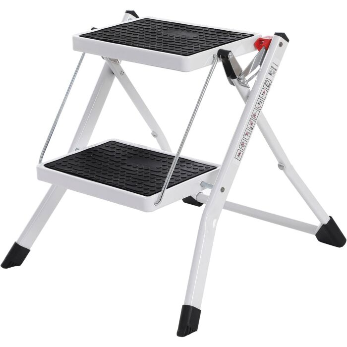 Sie bewerten: Hoppa! | 2-Stufen Leiter | Breite 20 cm | rutschfester Gummi | Tragkraft 150 kg | Stahl | GS-zertifiziert | Schwarz und Weiß