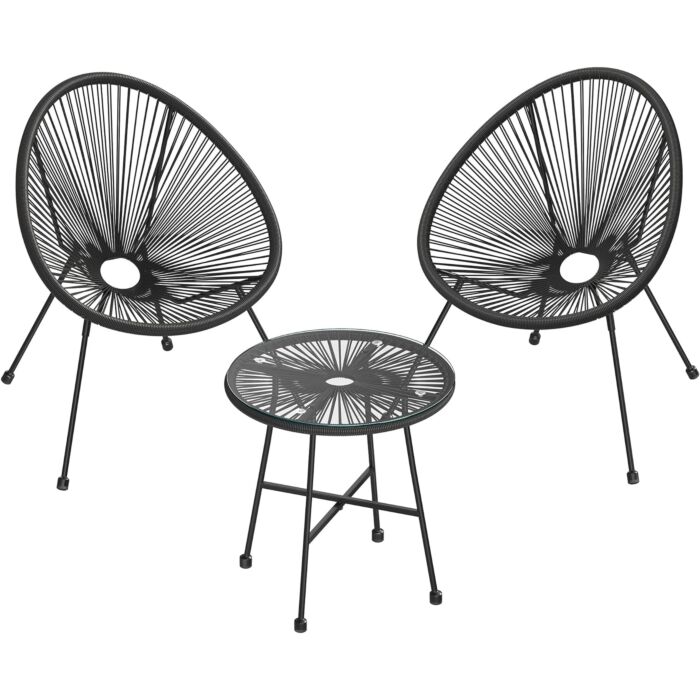 Hoppa! | Balkonmöbel Set | 3er Set | Schwarz | Indoor & Outdoor