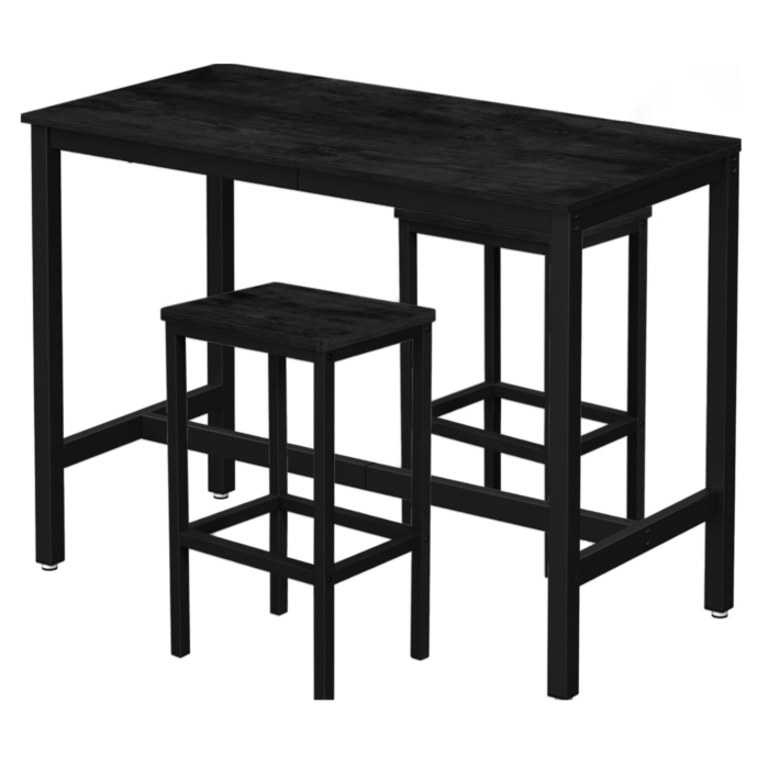 Hoppa! Bartafel- en barkrukkenset | Zwart | Bartafel 120×60×90 cm, 2 barkrukken 30×40×65 cm (L×B×H)
