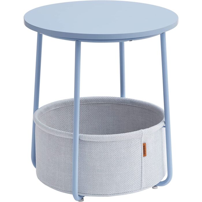 Hoppa! | Bijzettafel | Klein | Rond | Stoffen Mand | Opbergruimte | Poederblauw & Pastelblauw