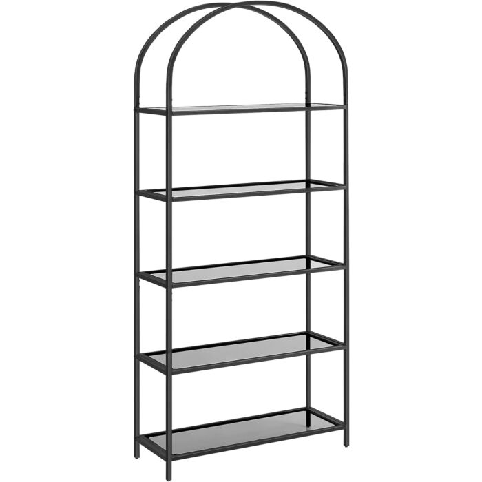 Hoppa! | Boekenkast | 5 niveaus, Gehard glas, Metalen structuur, Zwart & Grijs