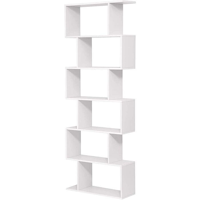 Das Bücherregal misst 70 x 24 x 190,5 cm und besteht aus hochwertigem Holz. Jedes der 6 rechteckigen Fächer bietet Platz für bis zu 10 kg.
