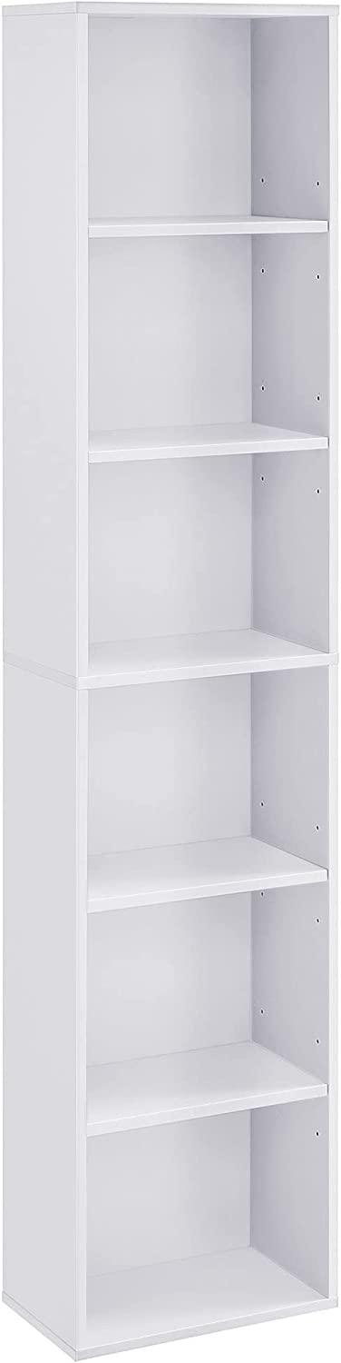 Hoppa! | Bücherregal mit 4 Ebenen | Höhenverstellbar | 40 x 24 x 121,5 cm | Weiß