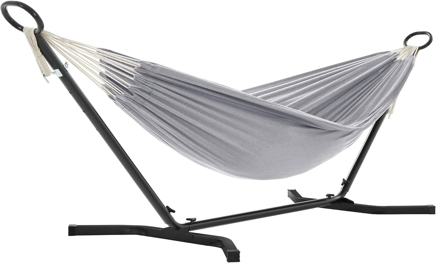 Hoppa | Doppelte Hängematte | Schwarz Metallrahmen & Graue Hängematte | 240 kg Tragfähigkeit