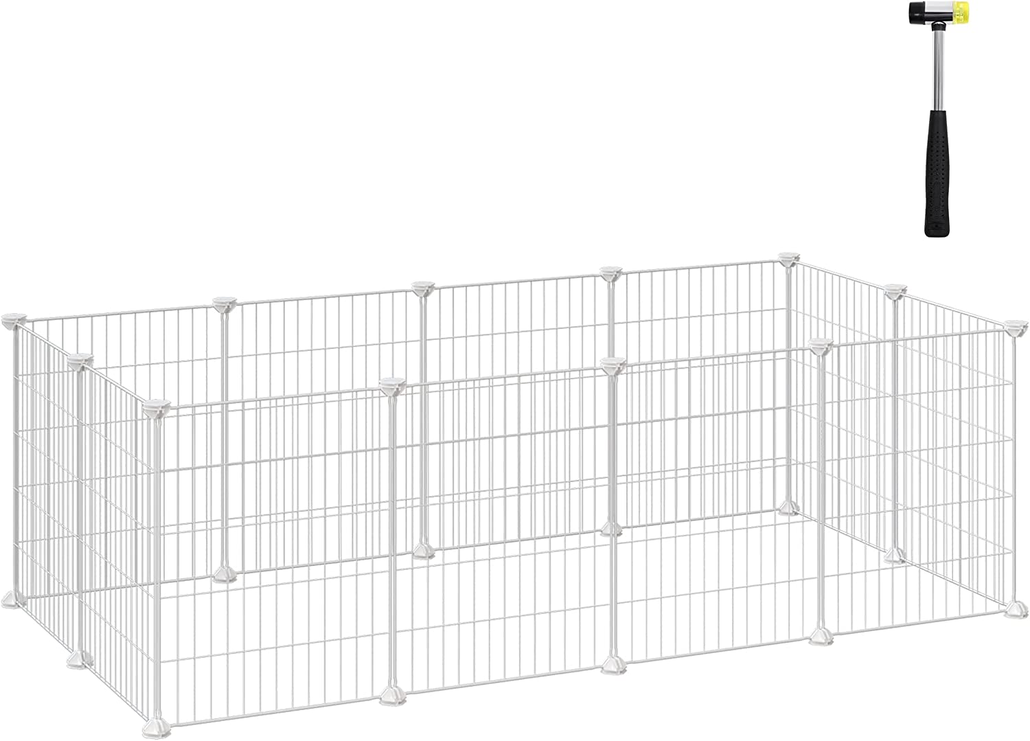 Das Hoppa! Freilauf-Kleintierhaus bietet Ihren pelzigen Familienmitgliedern wie Kaninchen, Meerschweinchen oder Hamstern die Möglichkeit, sich frei zu bewegen. Sie werden die Sicherheit dieses Käfigs zu schätzen wissen, da die Maschenweite auf 2,5 cm reduziert wurde, um Verheddern zu verhindern, während Sie Ihre Tiere problemlos beobachten können. Maße und Material Der Käfig hat die Abmessungen 143 x 73 x 46 cm und wiegt 4,31 kg. Er besteht aus robustem Metallgitter in Weiß und wird durch starke ABS-Kunststoffverbinder zusammengehalten. Funktionalität und Design Die Konstruktion des Käfigs gewährleistet die Stabilität, auch wenn Ihre kleinen Lieblinge darin herumtoben. Anti-Rutsch-Pads unter den Füßen schützen Ihren Boden vor Kratzern und sorgen für zusätzliche Stabilität. Verwendung und Anwendung Der Hoppa! Freilauf-Kleintierkäfig lässt sich einfach DIY-mäßig aufbauen. Die 12 Gitterplatten, 24 Kunststoffverbinder, Anti-Rutsch-Pads, Gummihammer und Kabelbinder ermöglichen es Ihnen, ein individuelles Tierparadies für Ihre Haustiere zu gestalten. Merkmale - Ideal für Kaninchen, Meerschweinchen und andere kleine Haustiere - Sichere Umgebung mit starken ABS-Kunststoffverbindern - Einfache DIY-Montage mit allen benötigten Elementen - Metallgitter in Weiß, 143 x 73 x 46 cm