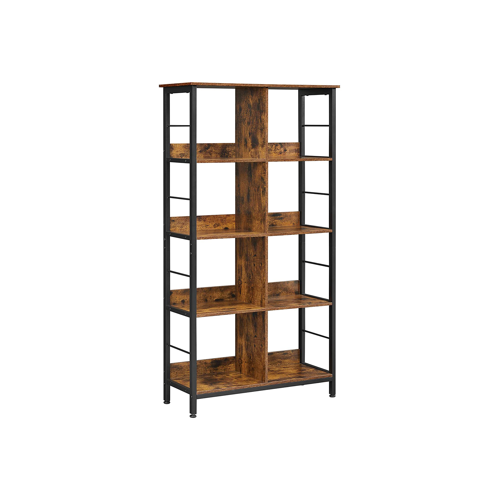 Setzen Sie dieses freistehende Bücherregal mit 8 Fächern in Ihrem Wohnzimmer, Büro oder Schlafzimmer in Szene und gestalten Sie Ihren persönlichen Lesefavoritenbereich. Entspannen Sie auf der Couch, schnappen Sie sich ein gutes Buch und lassen Sie sich von den Geschichten verzaubern. Mit einem Design in Vintage-Braun, unterstützt von schwarzen Metallrahmen und perfekter Symmetrie, bringt dieses Bücherregal einen Hauch von Industriecharme in Ihre Räumlichkeiten, wodurch Ihr Interieur auf elegante Weise aufgewertet wird. Damit Ihre Bücher sicher und stabil platziert sind, verfügt das Regal über verstellbare Beine und erhöhte Kanten an den Regalen, um ein Umfallen zu verhindern. Die hochwertige Spanplatte gewährleistet eine hohe Tragfähigkeit von bis zu 50 kg, was Platz für eine Vielzahl von Büchern verschiedener Größen und Typen bietet. Mit einer Größe von 80 x 33 x 149 cm passt dieses Regal problemlos in verschiedene Räume und bietet eine stilvolle Lösung zur Aufbewahrung von Büchern. Die bebilderte Aufbauanleitung und die gekennzeichneten Einzelteile gewährleisten eine problemlose Montage, damit Sie schnell und unkompliziert Ihr neues Möbelstück genießen können.