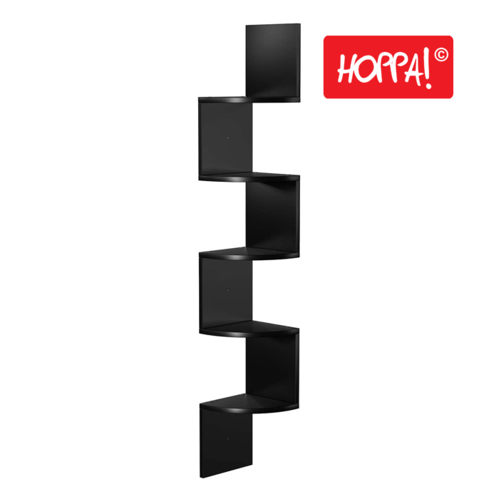 Das Hoppa! Eckregal ist eine elegante und praktische Lösung, um Ihren Wohnraum optimal zu nutzen. Mit fünf Ablagen bietet dieses Wandregal ausreichend Platz, um Bücher, Ihre liebsten Dekorationsartikel oder Pflanzen stilvoll zu präsentieren. Die minimalistische Bauweise und die elegante schwarze Farbe fügen sich nahtlos in jede Einrichtung ein.