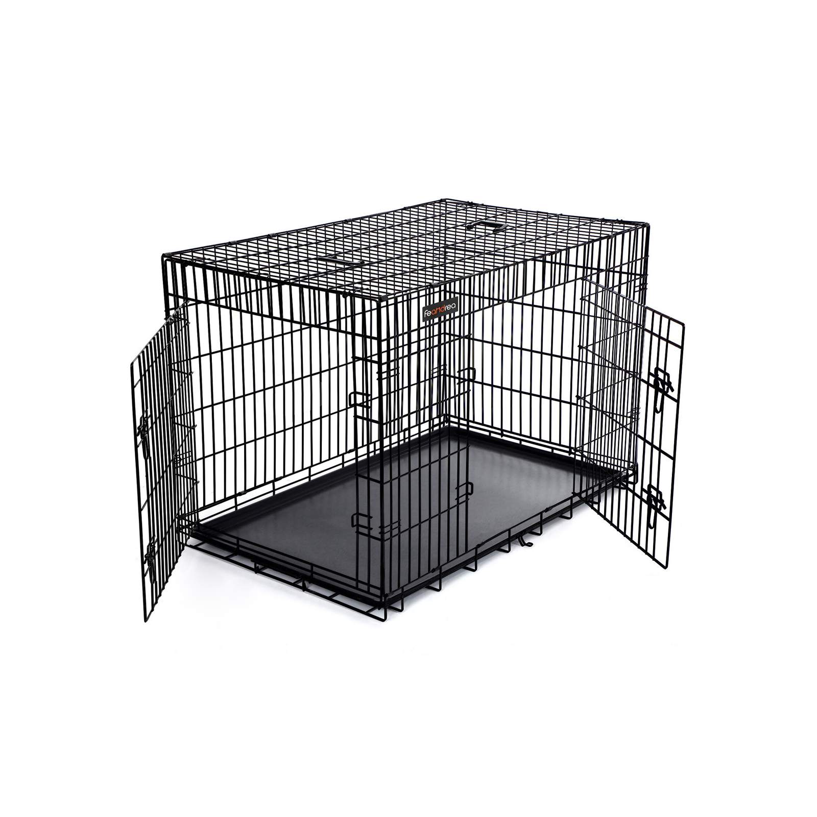 Der Hundekäfig bietet zwei Eingänge, einfache Reinigungsoptionen und ist faltbar für eine platzsparende Aufbewahrung.