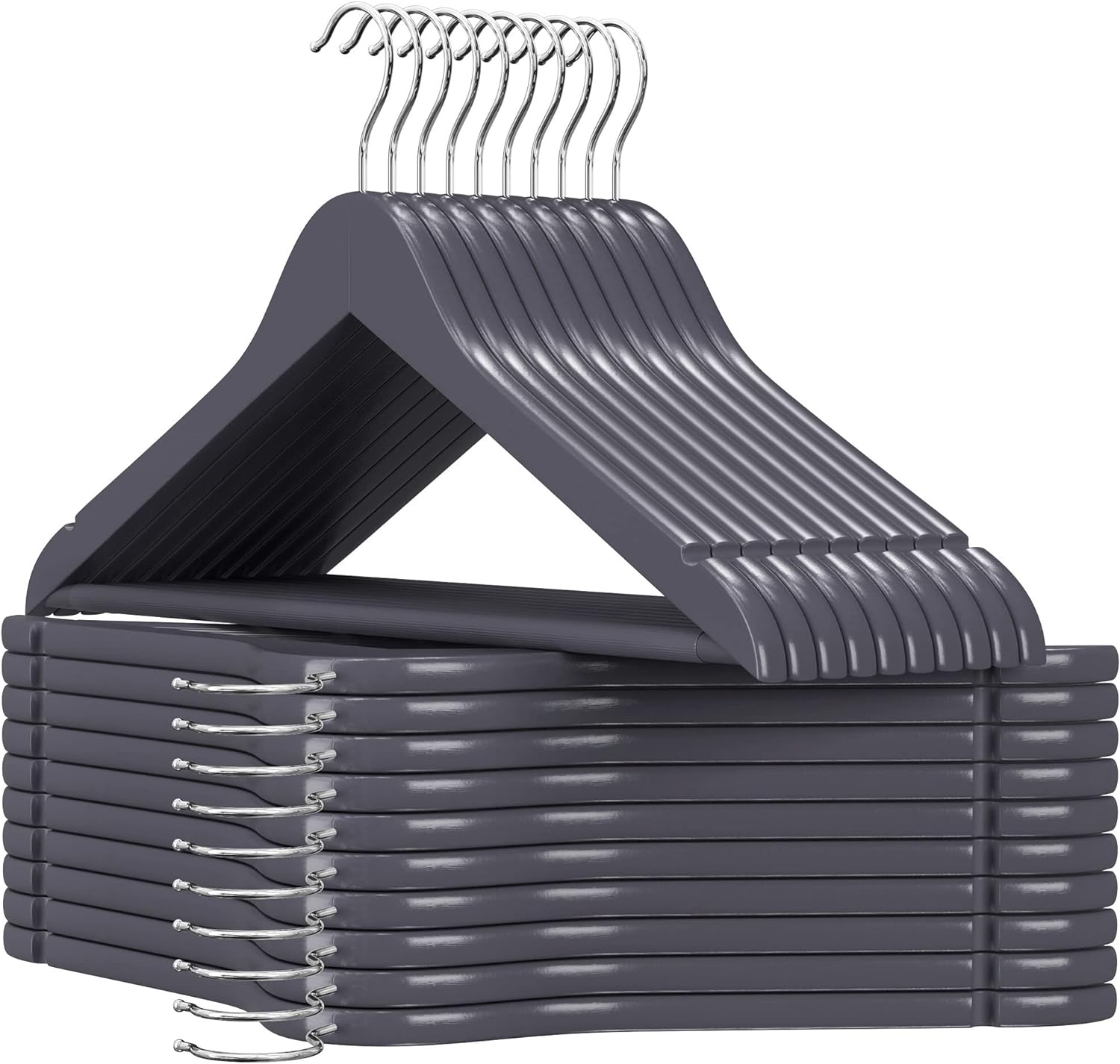 Hoppa! | 20er Pack Holz Kleiderbügel | Grau und Silber | Mit Schulterrillen - Rutschfester Hosenstange - 360° Drehbarer Haken