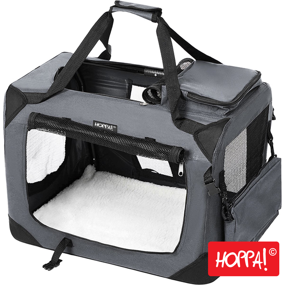 Hoppa! | Hundebox | Faltbar, 60 x 42 x 42 cm, Grau