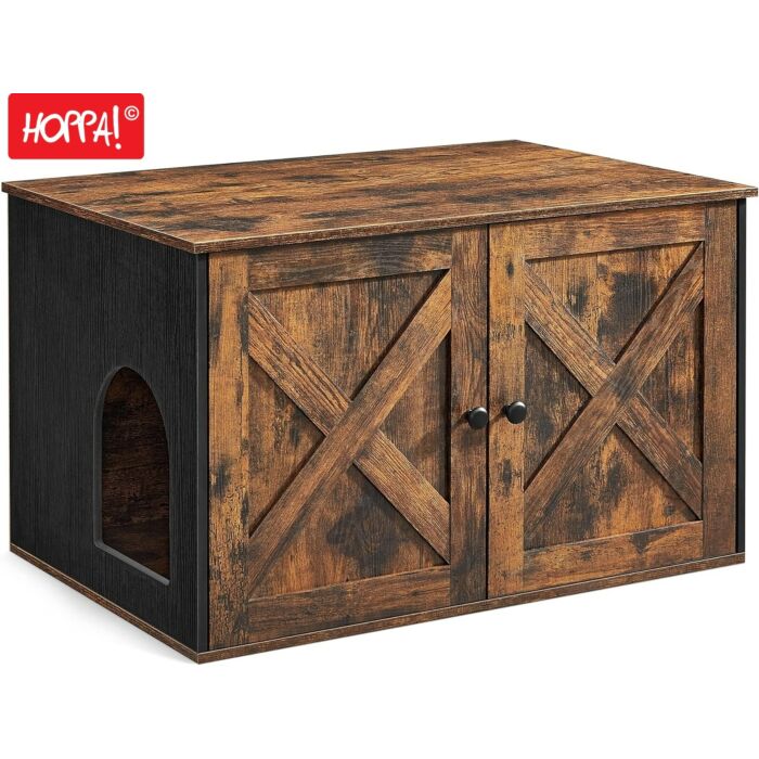 Hoppa! Katzentoilette | Katzenhaus | Türen | Vintage-Braun-Schwarz