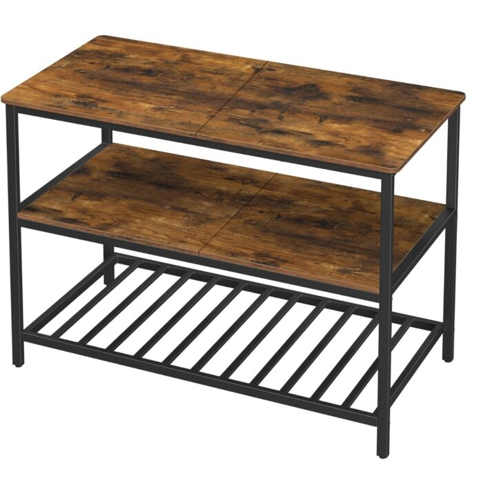 Die Hoppa! Kücheninsel in Braun und Schwarz ist das perfekte Möbelstück, um schöne Momente in Ihrer Küche zu genießen. Egal ob Sie mit Ihren Kindern Kekse backen oder hausgemachte Pizzen zaubern, diese Kücheninsel bietet mit einer Arbeitsfläche von 120 x 60 cm ausreichend Platz für Ihre kulinarischen Kreationen. Das Geheimnis dieser Kücheninsel liegt in ihrer Stabilität trotz Leichtigkeit. Mit 2 Ablagen aus Holzfasermaterial und Melaminbeschichtung, kombiniert mit einer robusten Struktur aus mattschwarzem Stahl, kann diese Kücheninsel bis zu 30 kg pro Regal tragen. Dank der 3 offenen Ablagen haben Sie alle benötigten Zutaten für Ihre Gerichte immer griffbereit. Von Mehl über Mixer bis hin zu Gewürzen – alles kann übersichtlich aufbewahrt werden. Die Montage dieser Kücheninsel gestaltet sich einfach und unkompliziert, mit einer klaren Anleitung, deutlich gekennzeichneten Einzelteilen und verstellbaren Beinen für die optimale Höhe. Gönnen Sie sich mit der Hoppa! Kücheninsel mit 3 Ebenen und praktischer Aufbewahrungsoption für Küchenutensilien ein Möbelstück aus der ALINRU-Kollektion, um Ihrer Küche den letzten Schliff zu verleihen.