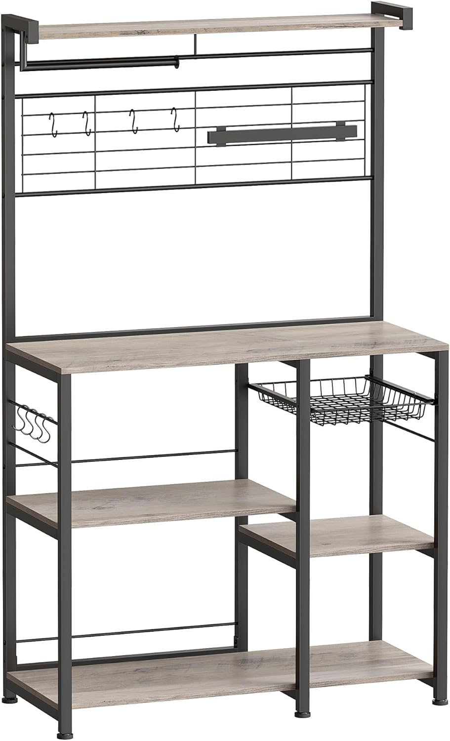Dieses Hoppa! Küchenregal bietet viel Stauraum und Möglichkeiten, um Ihre Küche effizient zu organisieren. Das obere Regal eignet sich ideal für Gewürze und die 12 Haken sind perfekt für Pfannen, Kochlöffel oder Schneebesen. Es gibt auch Regale für Geräte wie eine Kaffeemaschine, einen Toaster und eine Mikrowelle, damit Ihre Küche ordentlich und organisiert bleibt und Sie effizienter kochen können.