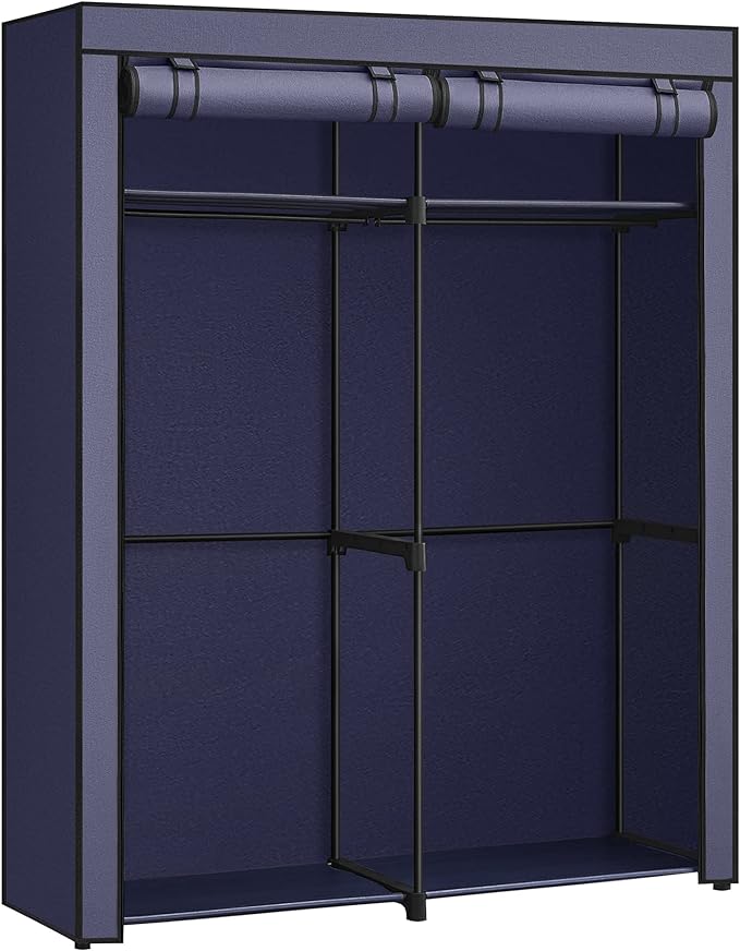 Der Kleiderschrank misst 43 x 140 x 174 cm und ist in einem attraktiven dunkelblauen Farbton erhältlich. Das Stoffmaterial ist langlebig und pflegeleicht für eine langfristige Verwendung.