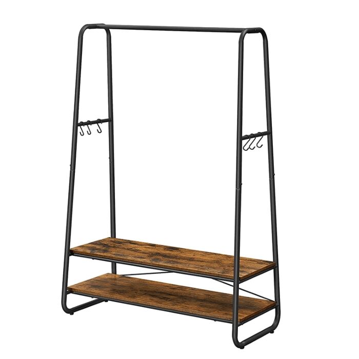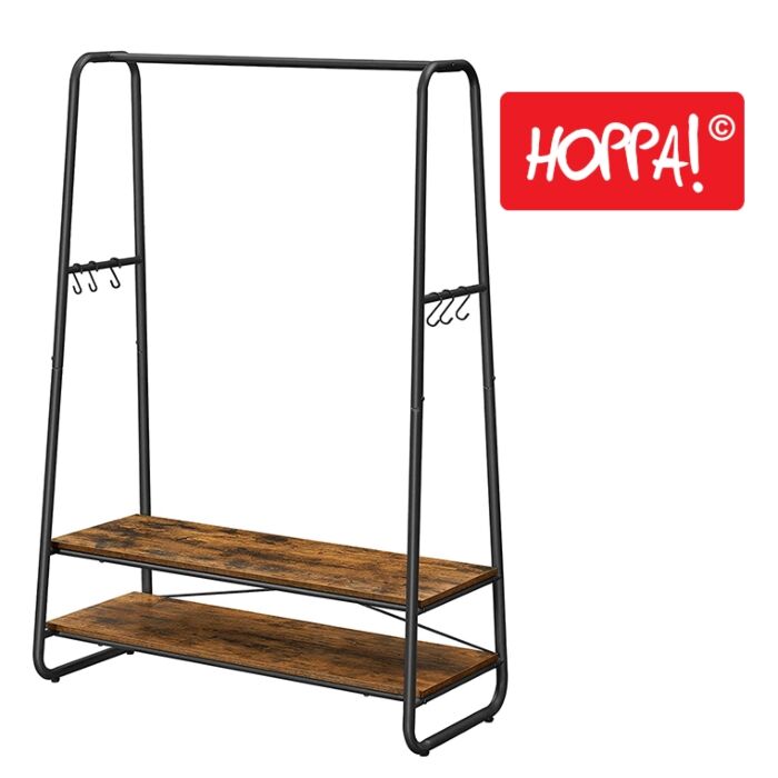 Hoppa! Kleiderständer Garderobe 2 Ablagen 6 Haken in S-Form | Stahlrahmen | Industriedesign | Vintage Braun Schwarz