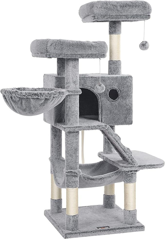 Het ontwerp van de krabpaal is gericht op de behoeften van katten, met verschillende niveaus en activiteiten om hen bezig te houden en te laten ontspannen. De zachte hoes zorgt voor comfort tijdens het spelen en rusten.