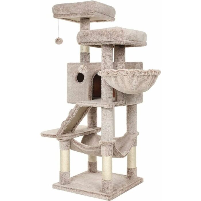 Die Hoppa! Krabpaal mit zarter Hülle in einem schönen Lichtbraun ist speziell für große Katzen konzipiert. Mit großzügigen Maßen von 49 x 30 x 30 cm bietet dieses Katzenmöbelstück eine gemütliche Ruhezone, in der sich Ihr Haustier entspannen und ausstrecken kann.