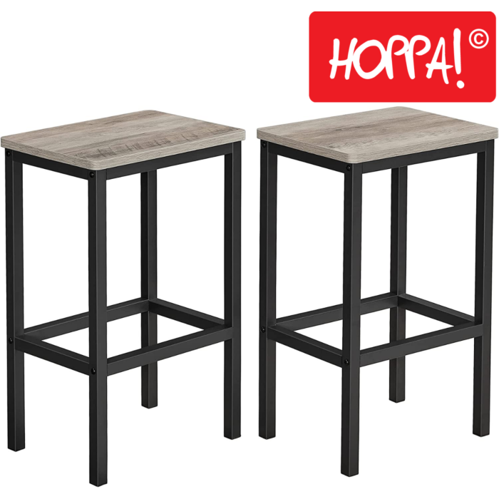 Hoppa! | Barkrukken Set | Industrieel Ontwerp | Greige & Zwart | 40 x 30 x 65 cm