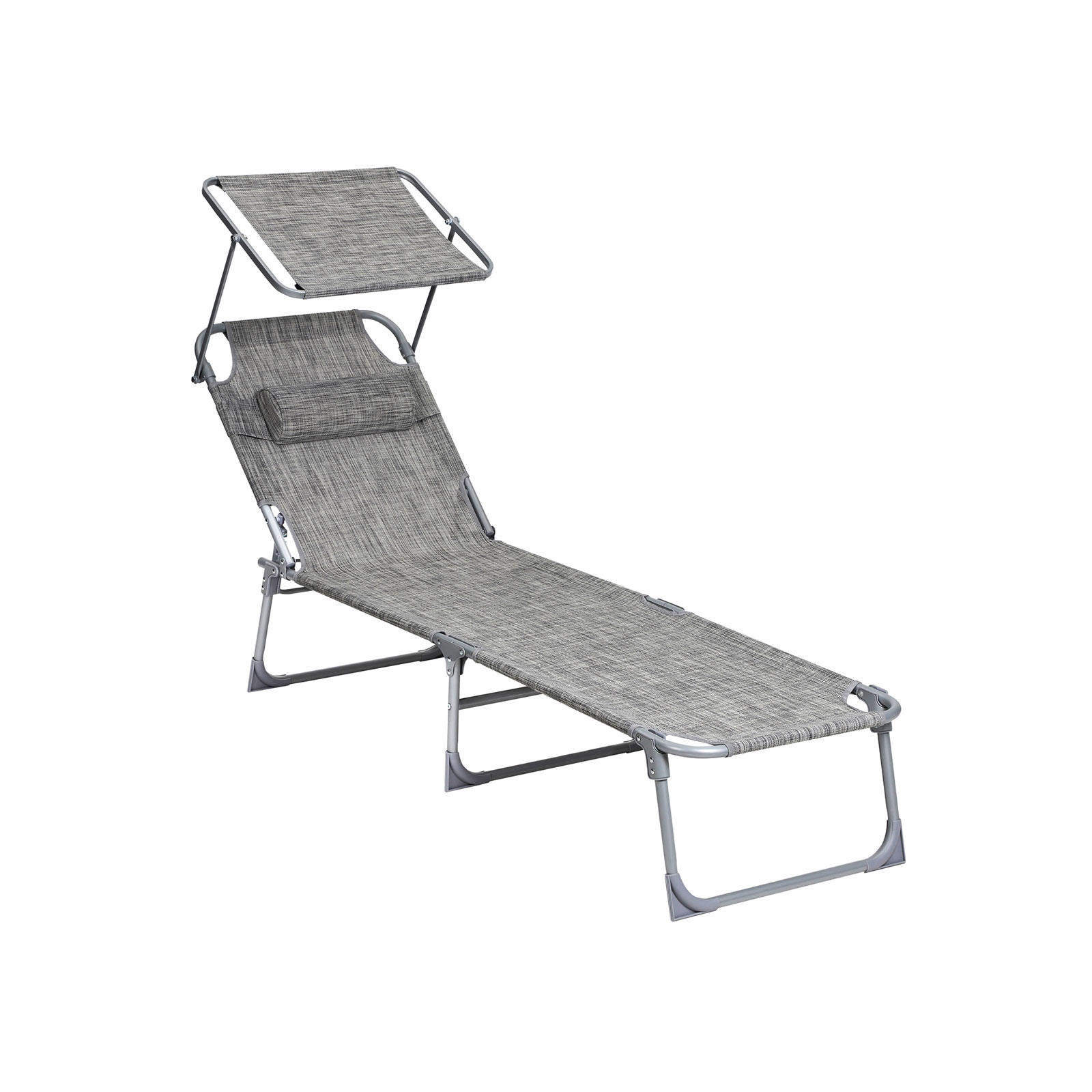 Die Sonnenliege verfügt über eine 4-fach neigbare Rückenlehne, eine abnehmbare Kopfstütze und einen Sonnenschirm. Dies ermöglicht es Ihnen, die Sitzposition und den Sonnenschutz ganz nach Ihren Wünschen anzupassen.