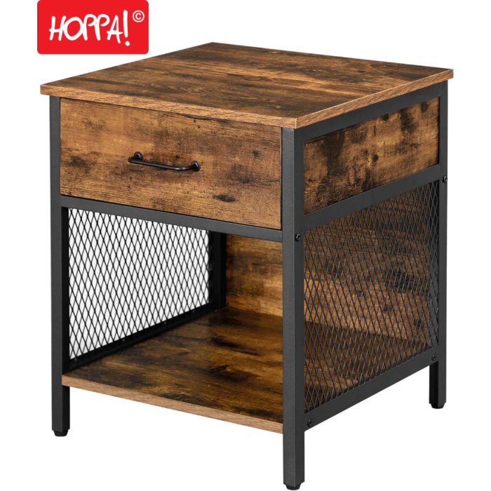 Vincyer | Nachttisch | Beistelltisch mit 1 Schublade – Braun/Schwarz – Spanplatte/Stahl